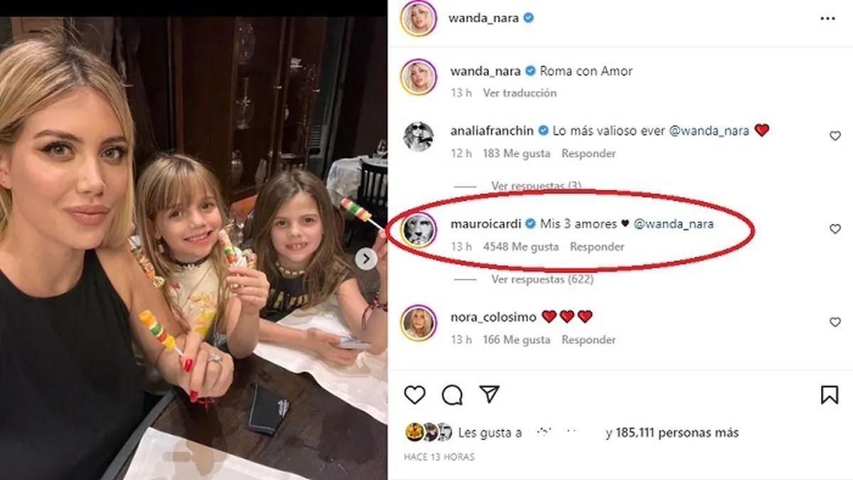 Asímismo, le dejó varios corazones en algunos posteos, en una de esas fotos Nara se muestra con las dos nenas desde Roma. "Mis 3 amores" escribió Icardi quién no tuvo respuesta de la madre de sus hijas.