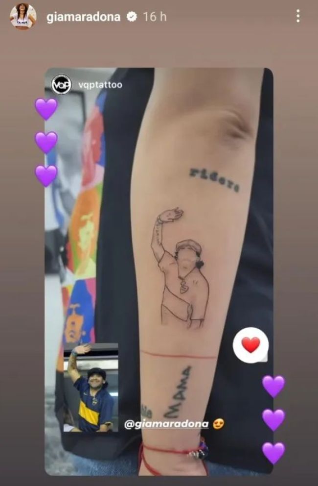 La hija de Diego Maradona se realizó emotivos diseños para llevar en su piel al campeón del mundo.