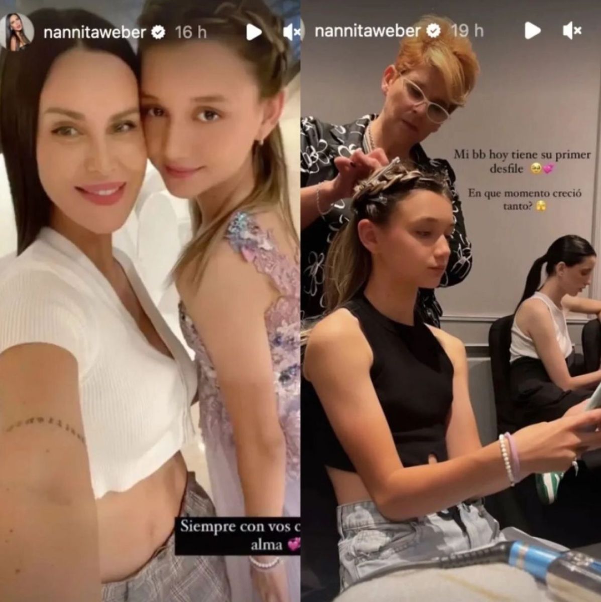 La modelo mostró la preparación de su hija en peinado y maquillaje y escribió: “Mi bebé hoy tiene su primer desfile....¿En qué momento creció tanto?”.