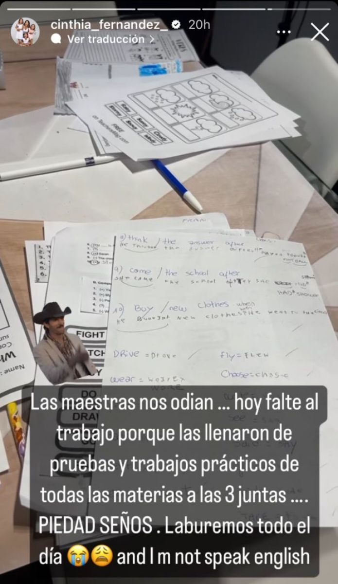 La panelista de Momento D, Cinthia Fernández realizó una queja a través de sus historias de instagram por la cantidad de trabajos que las maestras enviaban a sus hijas.