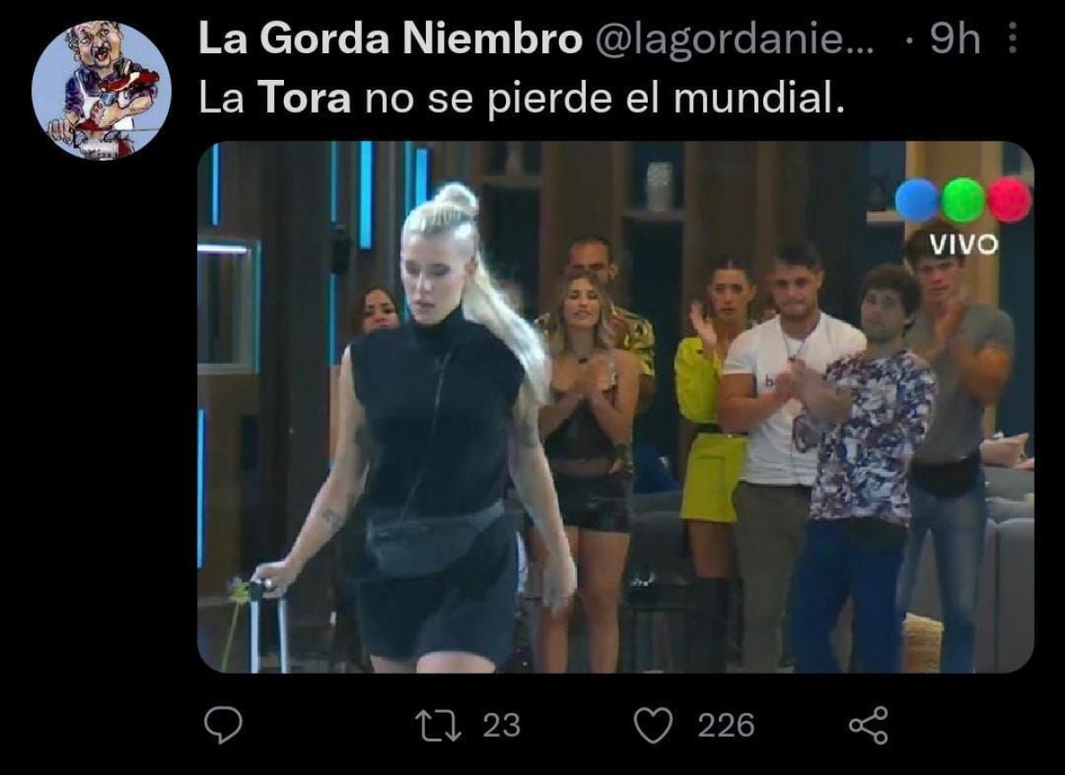 Se fue La Tora! Que pase la siguiente cola juguetona. #GranHermamo pic.twitter.com/hKuH6NZxkU