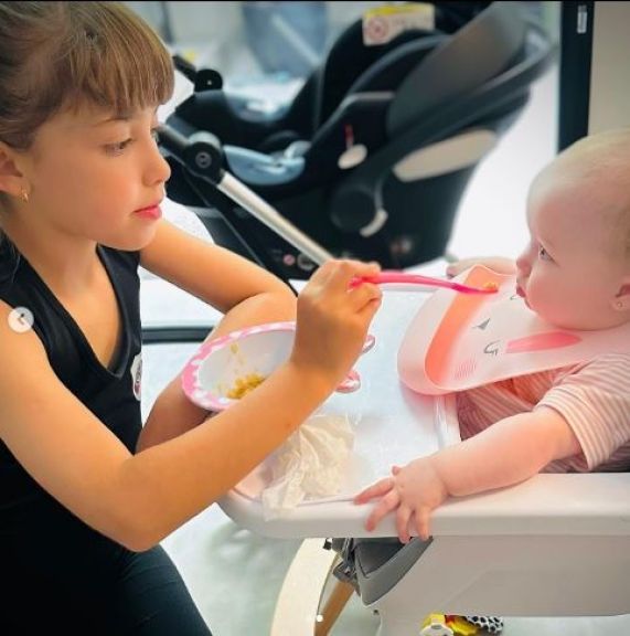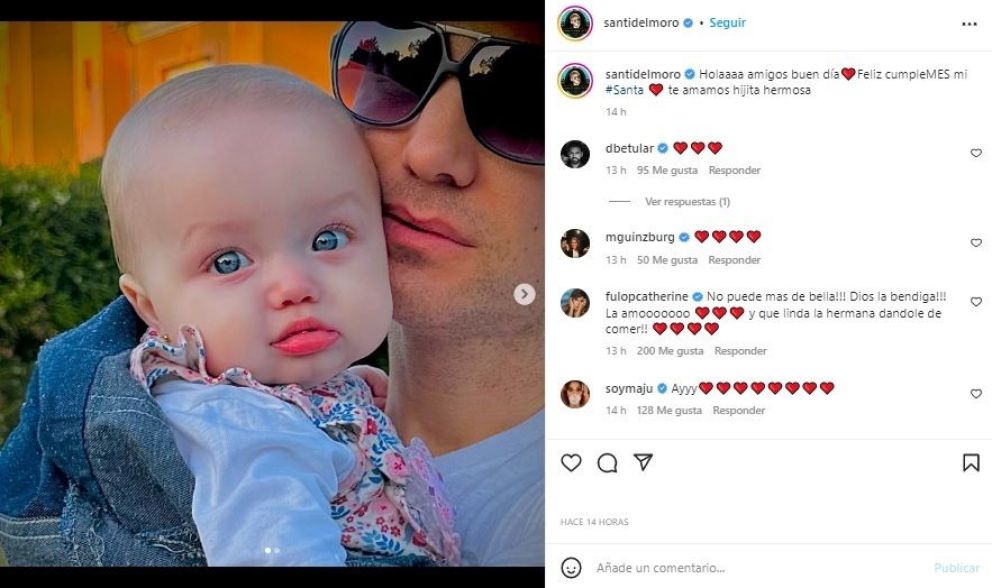 En el posteo que realizó el conductor se ven dos fotos, la primera muestra la cara de Santa y en la segunda se ve a su hermana mayor alimentándola: “Hola amigos. Buen día. Feliz cumplemes, mi Santa. Te amamos hijita hermosa”, escribió.