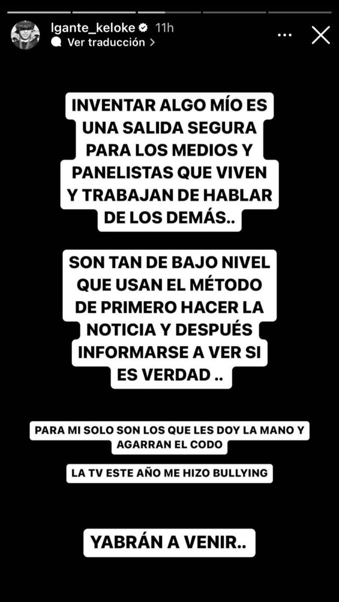 “Inventar algo mío es una salida segura para los medios y panelistas que viven y trabajan de hablar de los demás. Son de tan bajo nivel que usan el método de primero hacer la noticia y después informarse para ver si es verdad”, escribió en sus redes.