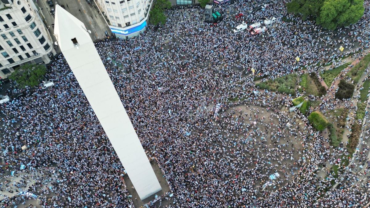 Una multitud se concentraba este martes a la tarde en el Obelisco para celebrar el pase de la selección a la final del Mundial de Qatar 2022, mientras que miles de personas festejaron en distintos espacios públicos la victoria por 3-0 frente al combinado croata.