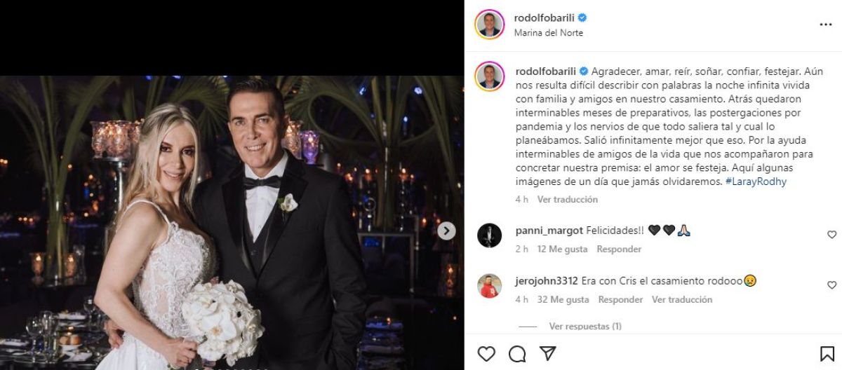 El emotivo posteo de Rodolfo Barili luego de su casamiento: "El amor se festeja"