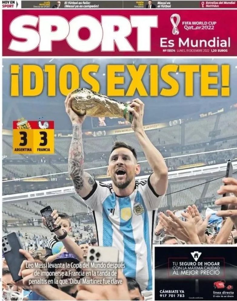 Por otra parte, The Mirror tituló con la palabra GOAT (el más grande de todos los tiempo) Es Messi y el final". En ese sentido, el diario Sport de Barcelona tituló: "¡D10S existe!".