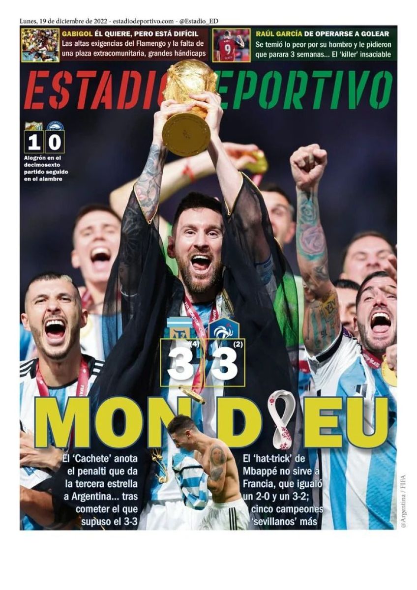 La Selección Argentina ganó la Copa del Mundo ante Francia por penales en la final del Mundial de Qatar 2022, como no podía ser de otro modo se llevó las portadas la mayoría de los diarios deportivos de Europa.