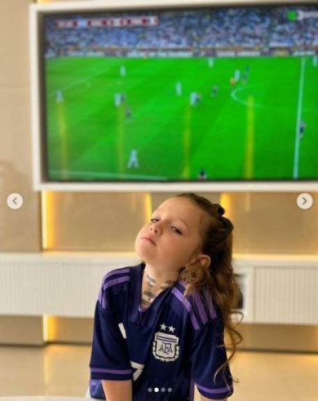 Camila Homs se encargó de compartir el modo en que Francesca y Bautista vivieron la adrenalina de la final. La madre los retrató luciendo la indumentaria oficial del combinado nacional, en el living de su hogar.