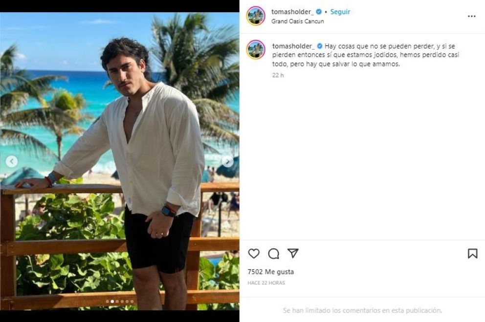El influencer decidió irse a Cancún, México, y compartió desde allí un mensaje que echó un poco de luz sobre su sorpresiva ausencia. Junto con varias imágenes del viaje, escribió: “Hay cosas que no se pueden perder, y si se pierden entonces sí que estamos jodidos, hemos perdido casi todo, pero hay que salvar lo que amamos”.