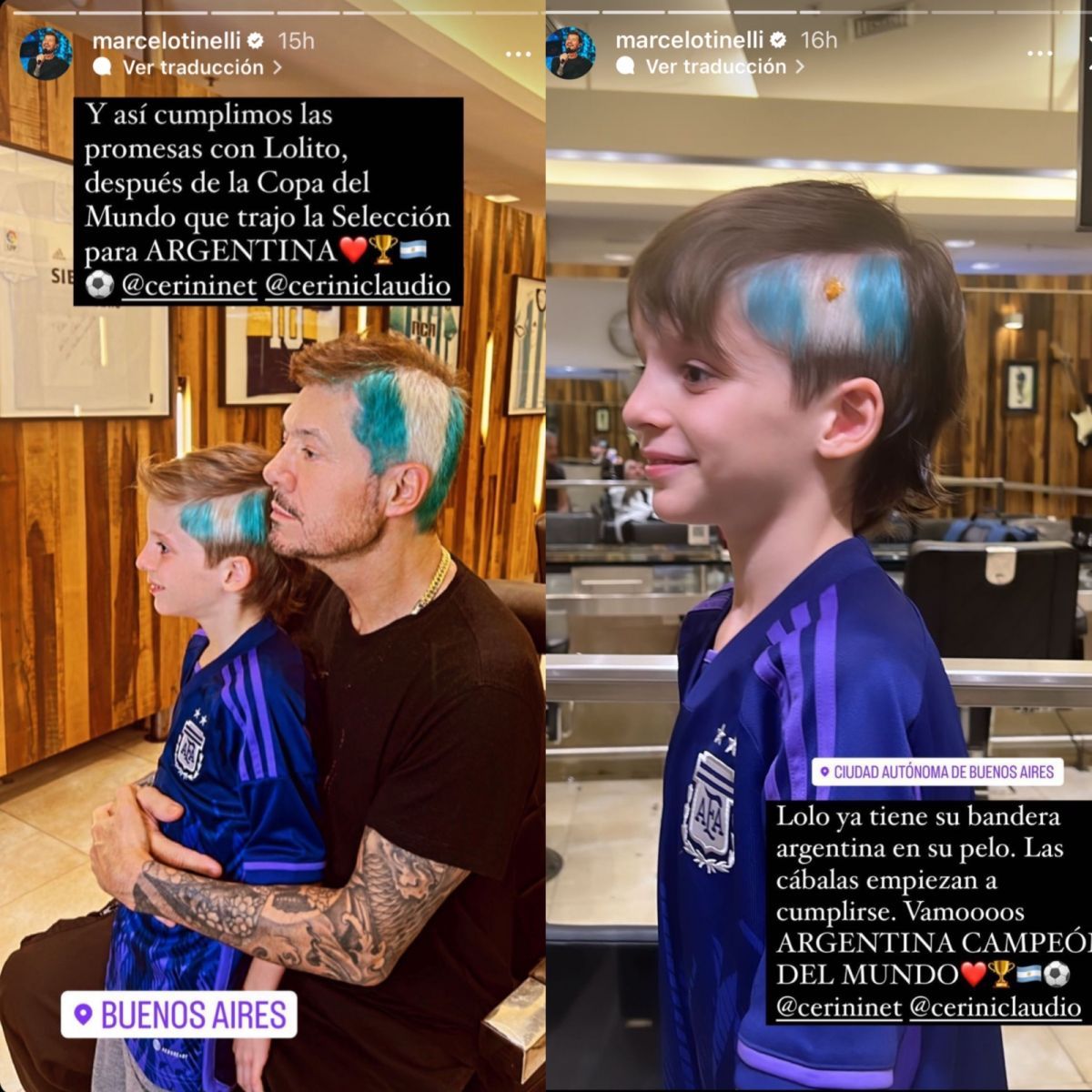 Luego posteó una foto de ambos con el cabello teñido y expresó: “Y así cumplimos las promesas con Lolito, después de la Copa del Mundo que trajo la Selección para Argentina”.