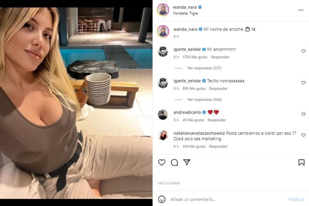 El cantante comentó una publicación de la ex de Mauro Icardi, nada más ni nada menos que con un "Mi amorrrrrr". La empresaria subió una foto suya con una taza de té, y uno de los primeros en darle like fue el papá de Jamaica. Tras el primer mensaje sumó uno más: "Tecito nomás”.
