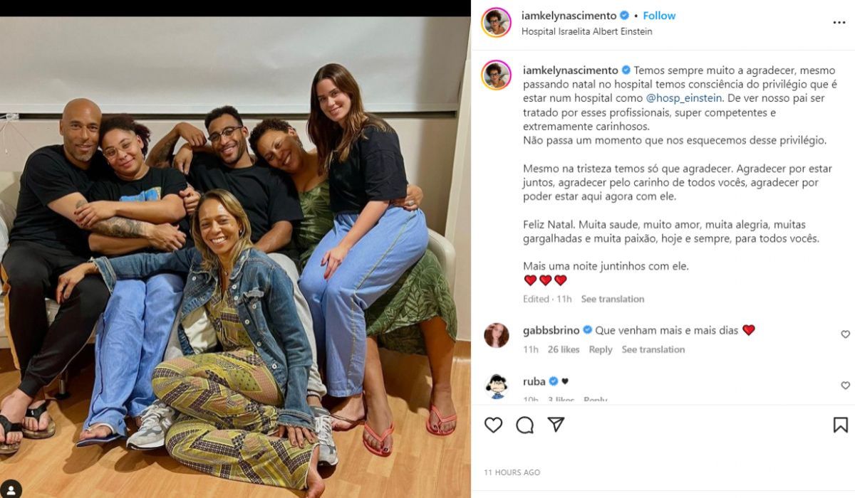 Kely, una de las hijas de Pelé, posteó una foto en Instagram junto familiares, quienes se reunieron en el hospital para recibir la Navidad junto al astro.