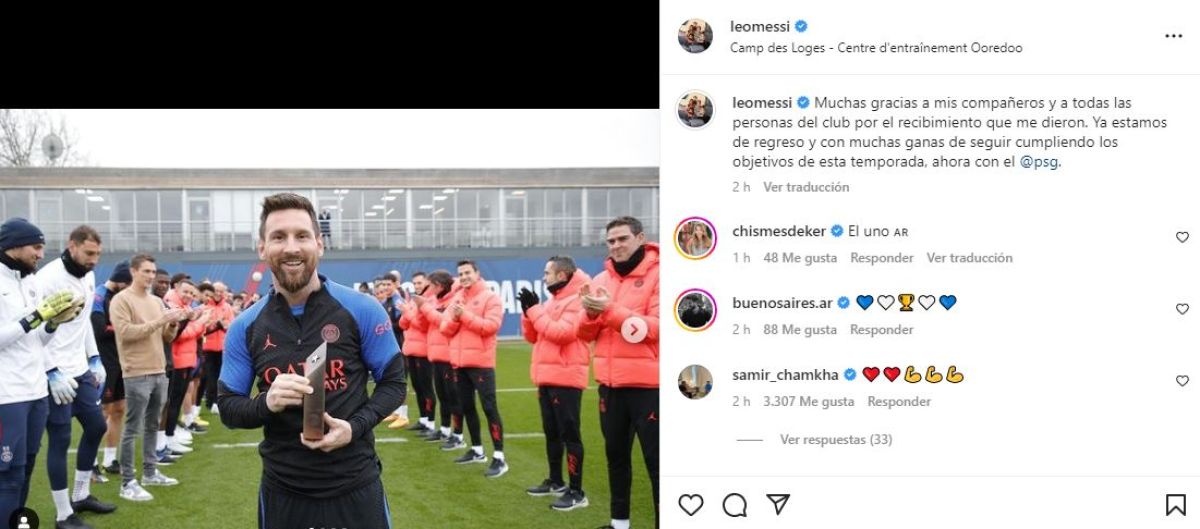 Tras el Mundial, Lionel Messi volvió a los entrenamientos en el Paris Saint Germain y agradeció a sus compañeros a través de sus redes por el recibimiento que le dieron.