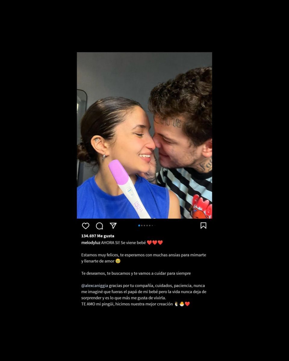 Ante esto, Melody continuó: "Alex gracias por tu compañía, cuidados, paciencia, nunca me imaginé que fueras el papá de mi bebé pero la vida nunca deja de sorprender y es lo que más me gusta de vivirla. TE AMO mi pingüi, hicimos nuestra mejor creación".