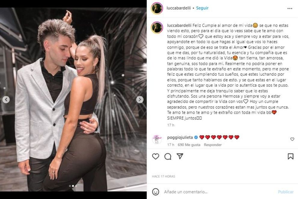 En el día del cumpleaños de Julieta Poggio de Gran Hermano 2022, su novio, Lucca Bardelli, publicó una sentida carta en sus redes, en medio de los rumores de romance entre la participante y Marcos Ginocchio.