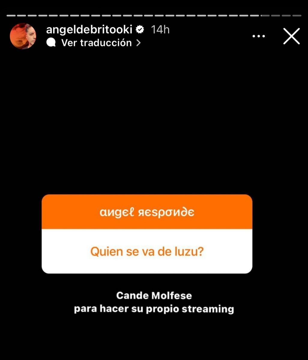 El mismo reveló que sería Cande Molfese, quién conduce Antes Que Nadie junto a Diego Leuco, Mica Vázquez y “El Trinche”. Y explicó que el motivo sería para realizar su propio streaming.