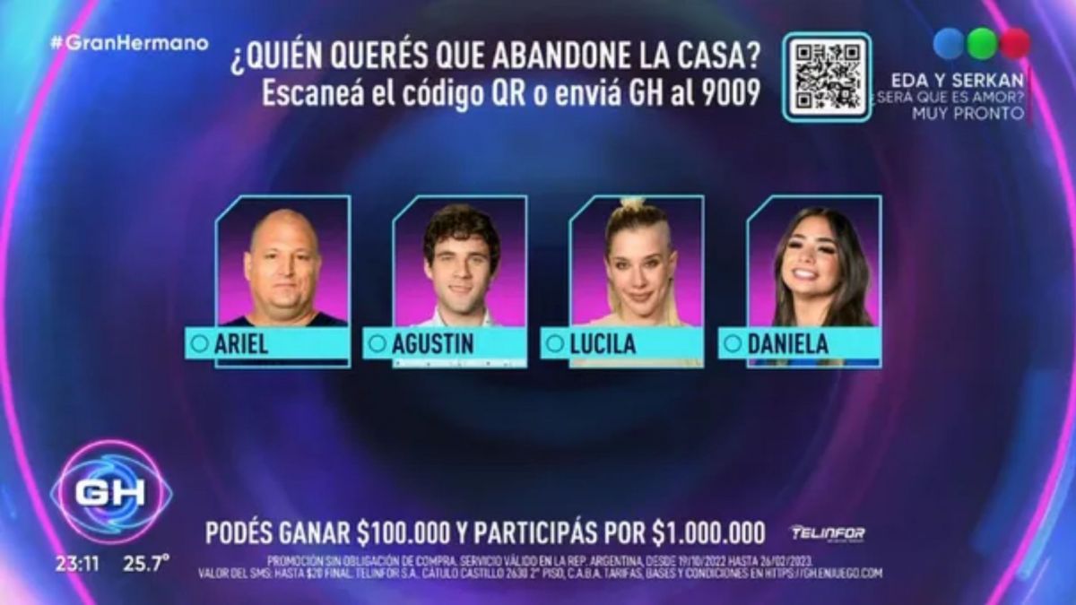 Finalmente, Ariel, Agustín, Lucila y Daniela quedaron nominados. La espontánea esta semana fue realizada por Julieta, que le dio 3 votos a Agustín y 2 a Ariel.