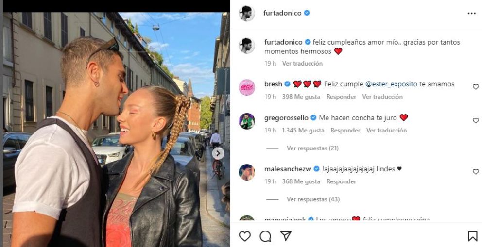 Tras casi dos años de una relación que mantienen con un bajo perfil, el actor uruguayo Nicolás Furtado compartió un especial posteo para Ester Expósito en el día de su cumpleaños.
