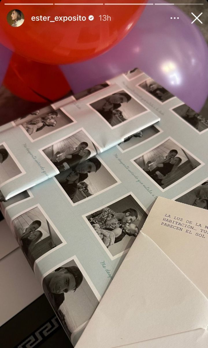 Por su parte, la actriz española compartió en sus historias el tierno detalle que tuvo el actor en su regalo. Todos los paquetes estaban envueltos en un papel impresocon fotografías de los dos.