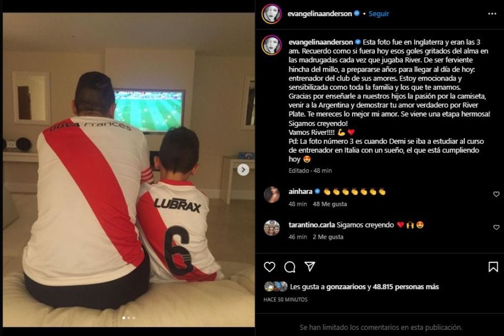 Anderson publicó una foto de Demichelis viendo un partido del Millonario en su comedor junto a su hijo y expuso: "Esta foto fue en Inglaterra y eran las 3 AM Recuerdo como si fuera hoy esos goles gritados del alma en las madrugadas cada vez que jugaba River".