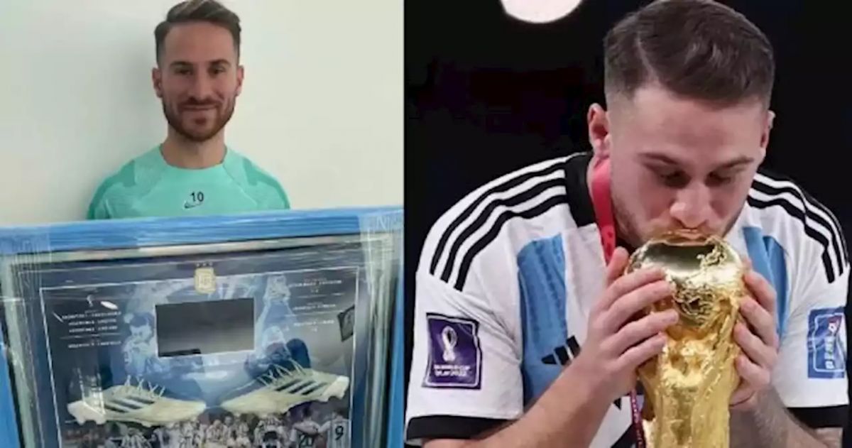 Alexis Mac Allister hizo un cuadro con los botines de la final en Qatar 2022