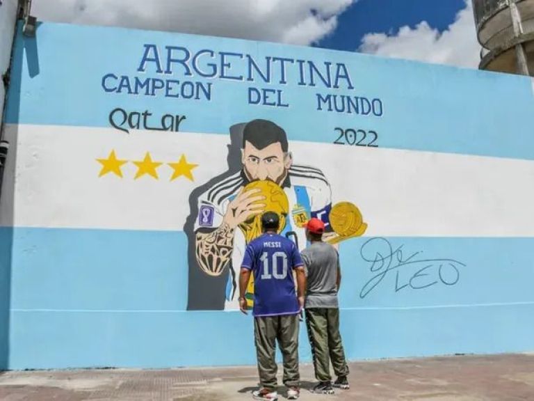 De este modo, Jorge, uno de los realizadores del trabajo contó: "Cuando Argentina perdió el primer partido con Arabia Saudita, dije, medio en broma, que si llegábamos a salir campeones, dibujaba a Messi en el patio. Y acá estoy, porque él es todo para mí".