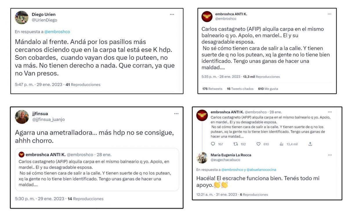 Las mismas incitaban a cometer actos de violencia contra él y su familia, e incluyen información sobre el lugar donde pasa sus vacaciones hace 30 años. Uno de los posteos, lleva más de 13 mil reproducciones y más de 160 comentarios, en los que se pueden leer toda clase de incitaciones a la violencia, insultos, y amenazas de muerte