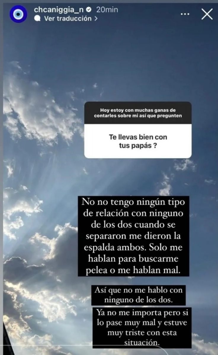 “Cuando se separaron me dieron la espalda ambos. Solo me hablaban para buscarme pelea o me hablan mal. Así que no me habló con ninguno. Ya no me importa pero sí lo pasé muy mal y estuve triste con la situación”, concluyó.