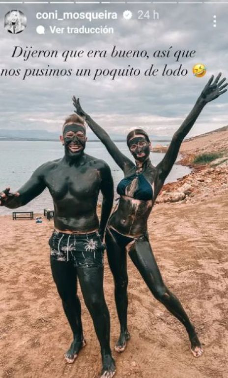 Coni aprovechó y subió algunas historias y dijo: “Hoy flotamos sobre el Mar Muerto. El punto más bajo del mundo”. Se la veía haciendo “la plancha” sobre las aguas calmas de ese lago salado. Y luego, mostrando cómo le aplicaban barro sobre el cuerpo, agregó: “Y nos bañamos en lodo que tiene muchos minerales y sales”.