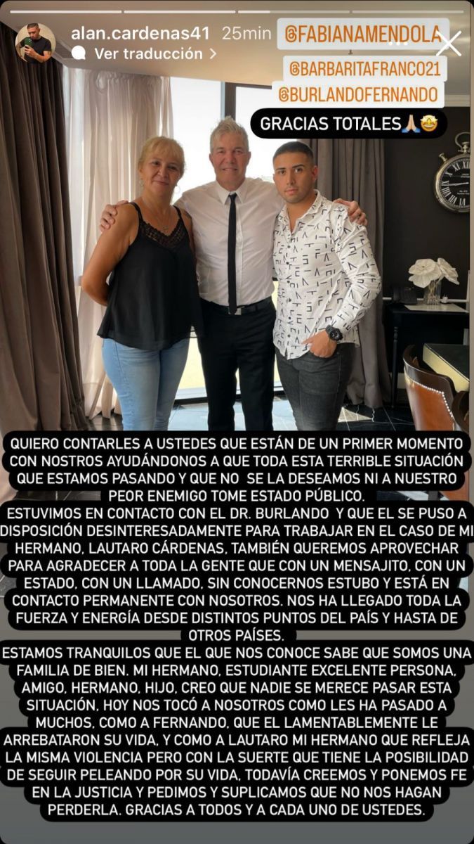 El hermano de la victima le agradeció al abogado a través de sus redes sociales.