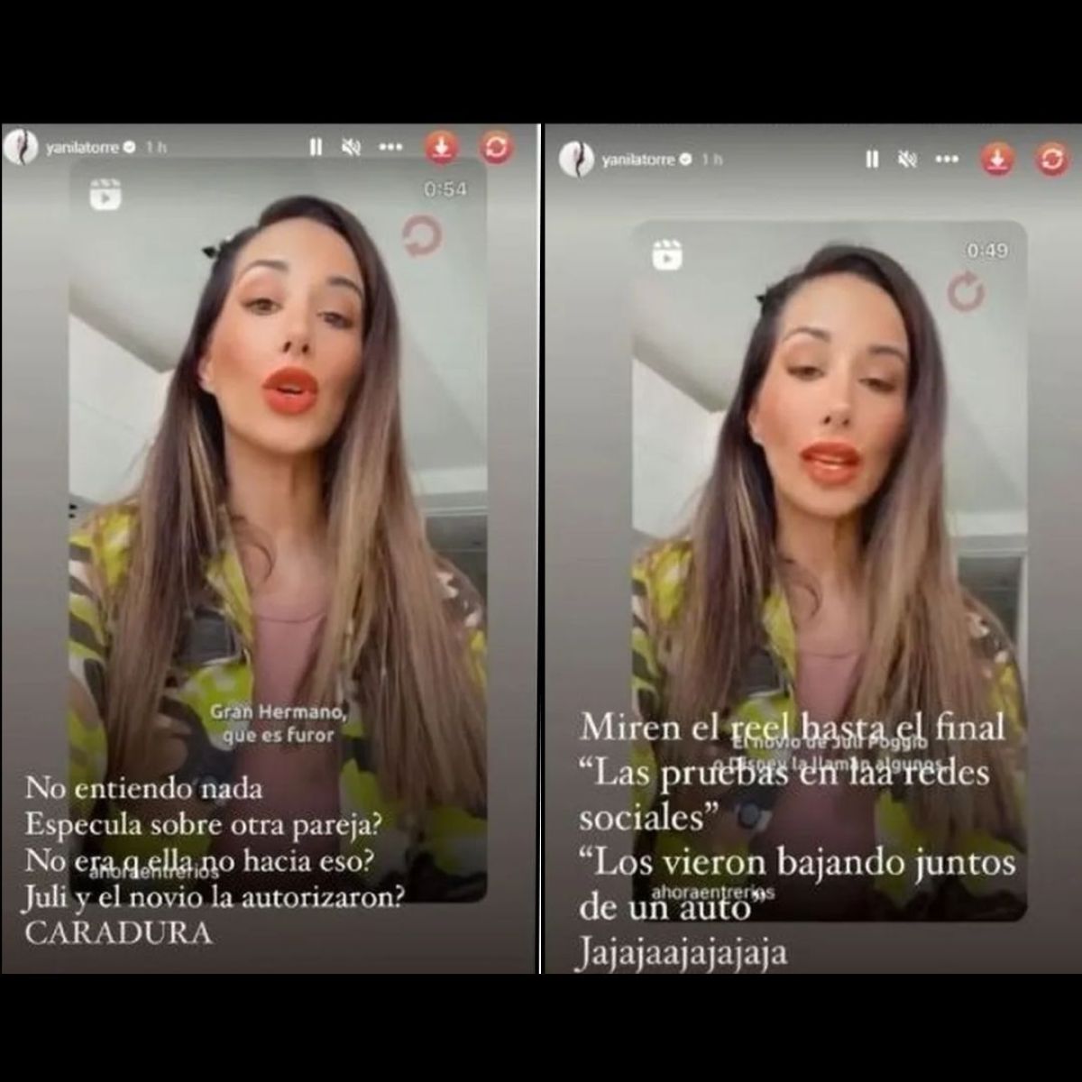 "No entiendo nada. ¿Especula sobre otra pareja? ¿No era que ella no hacía eso? ¿Juli y el novio la autorizaron? CARADURA", puso en su cuenta de Instagram. "Miren el reel hasta el final. 'Las pruebas en las redes sociales', 'Los vieron bajando junto de un auto', jajajajajaja", concluyó Latorre.
