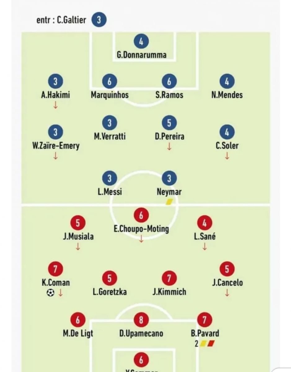 El medio galo calificó al astro con 3 puntos, al igual que que Neymar, Verratti, Hakimi y Zaire-Emery. El arquero Gianluigi Donnarumma obtuvo un punto más.