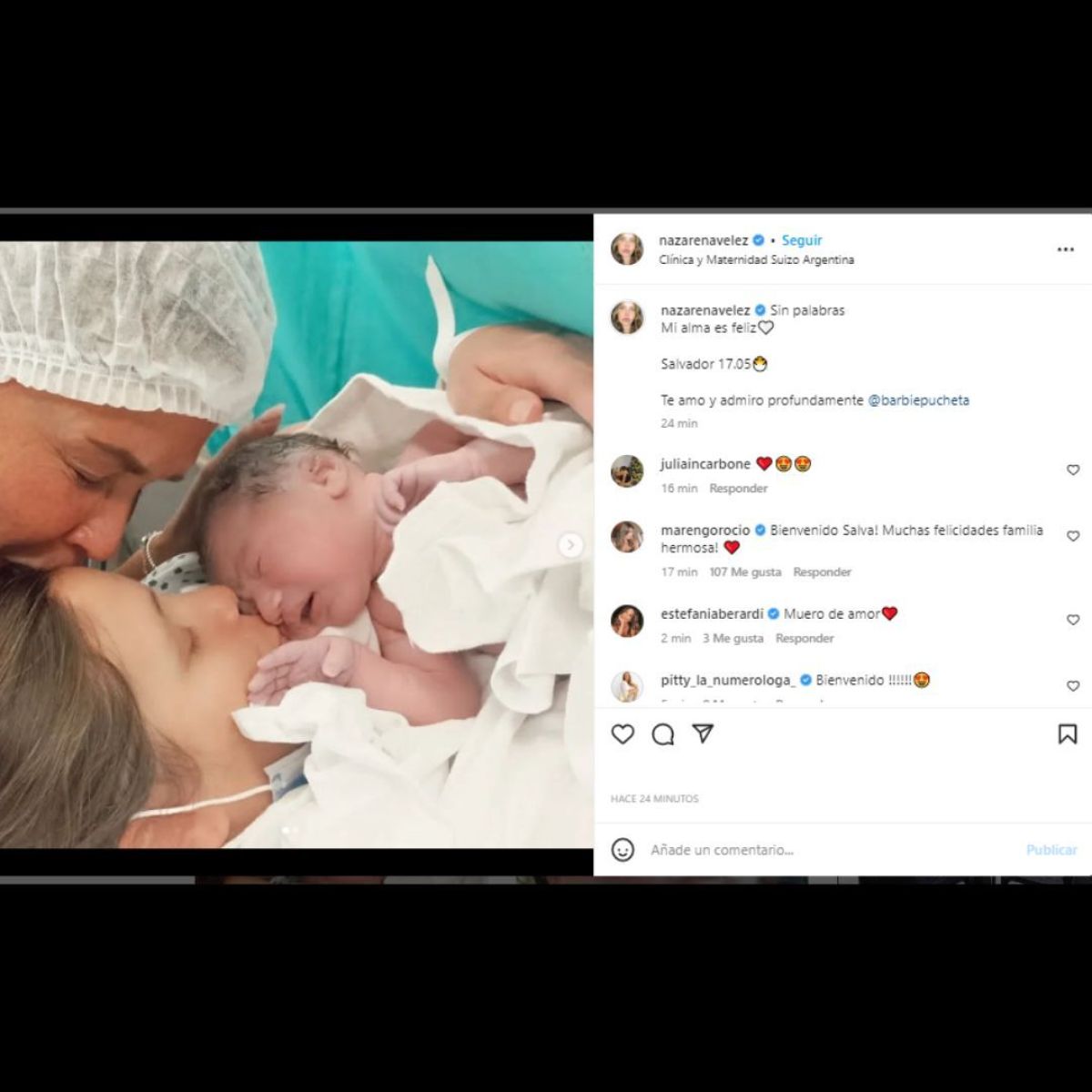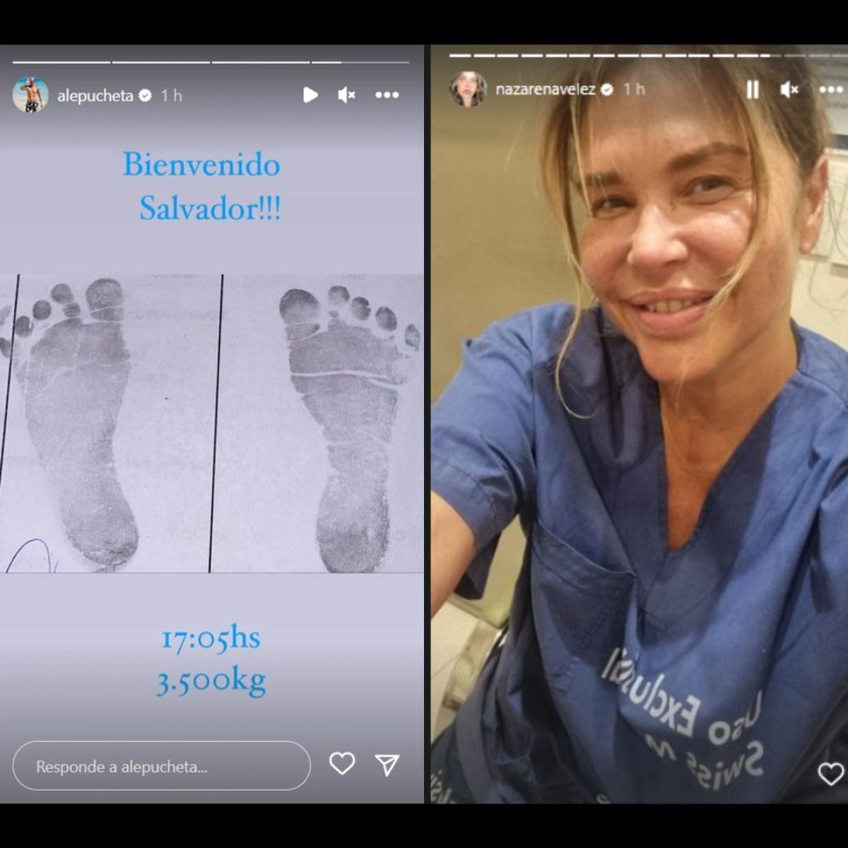El pequeño nació a las 17:05 y pesó 3,500 kg, y todo salió perfecto. En su cuenta de Instagram, Nazarena mostró fotos de la indumentaria que tuvo que usar en la clínica para poder acompañar a su hija durante el parto, y luego subió una publicación en donde se la ve junto a su nieto e hija en el hospital.