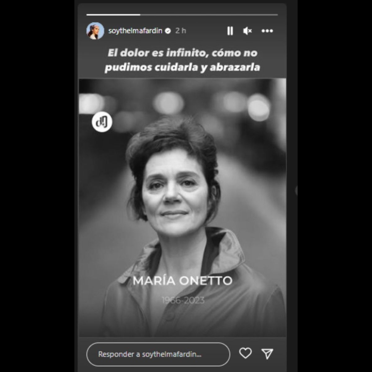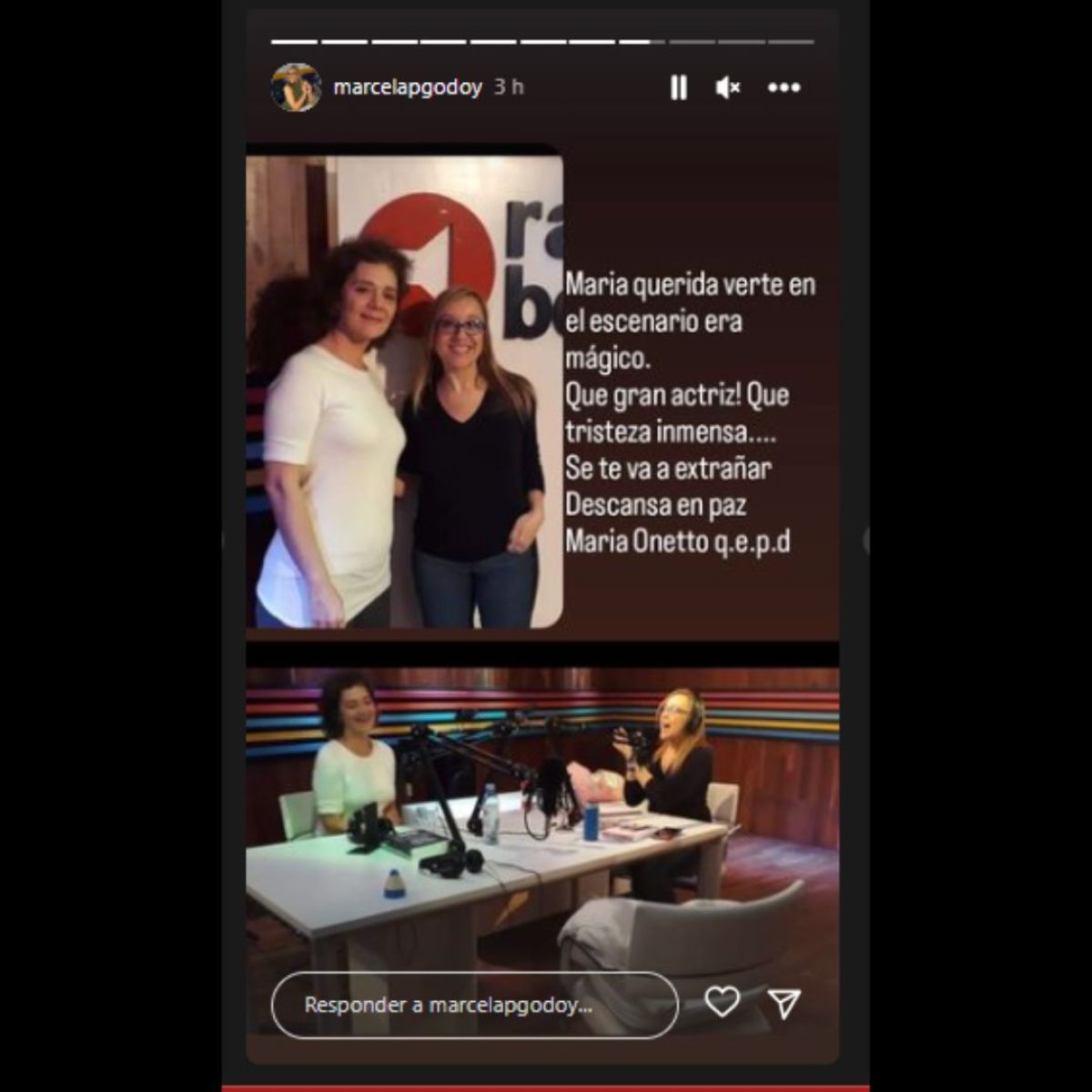Marcela Godoy, por su parte, dijo “María querida, verte en el escenario, era mágico. ¡Qué gran actriz! Qué tristeza inmensa... Se te va a extrañar. Descansa en paz. Maria Onetto Q.E.P.D”.