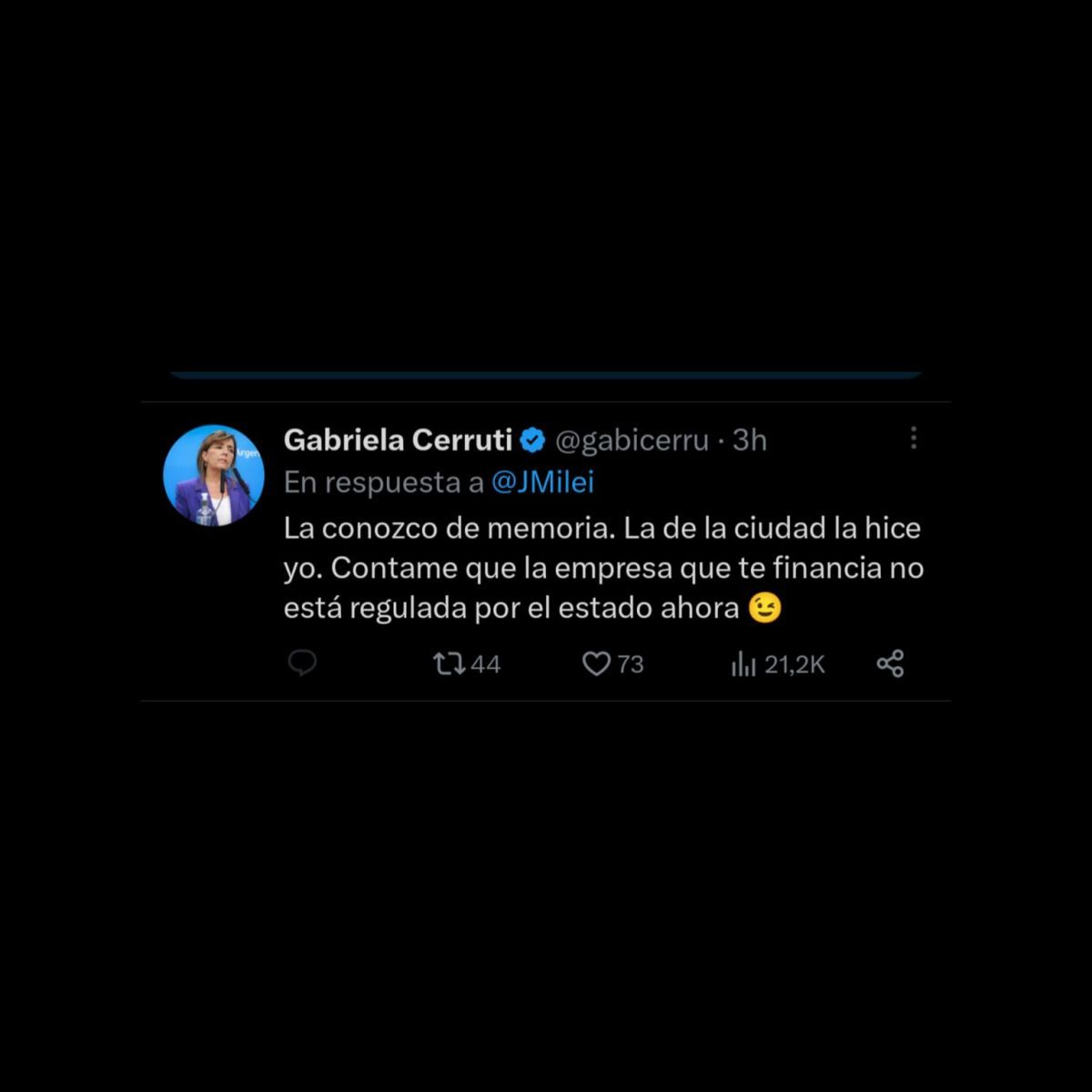 A raíz de la respuesta de Javier Milei, a unas declaraciones del presidente Alberto Fernández sobre cómo se sustenta económicamente, la vocera presidencial, Gabriela Cerruti, se enfrentó con el economista en Twitter.
