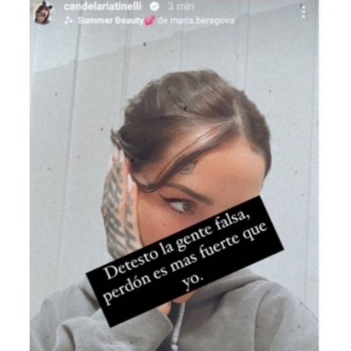 En otra historia de su red social, la cantante publicó una selfie y junto a su foto redactó: "Detesto la gente falsa, perdón, es más fuerte que yo". Luego, con el pasar de los minutos decidió eliminar esta última publicación.