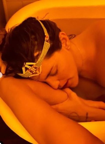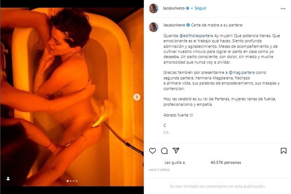 En las fotos que publicó, se la puede ver dentro de una bañera, en pleno trabajo de parto, y siendo contenida por una de sus parteras. “Meses de acompañamiento y de cultivar nuestro vínculo para lograr el parto en casa, como yo deseaba”, expresó.