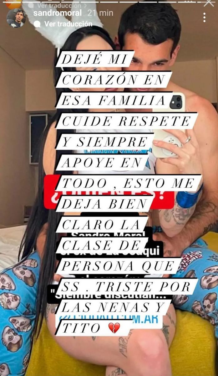 Sandro Moral le dedicó un fuerte posteo a su ex pareja tras la confirmación de su separación.