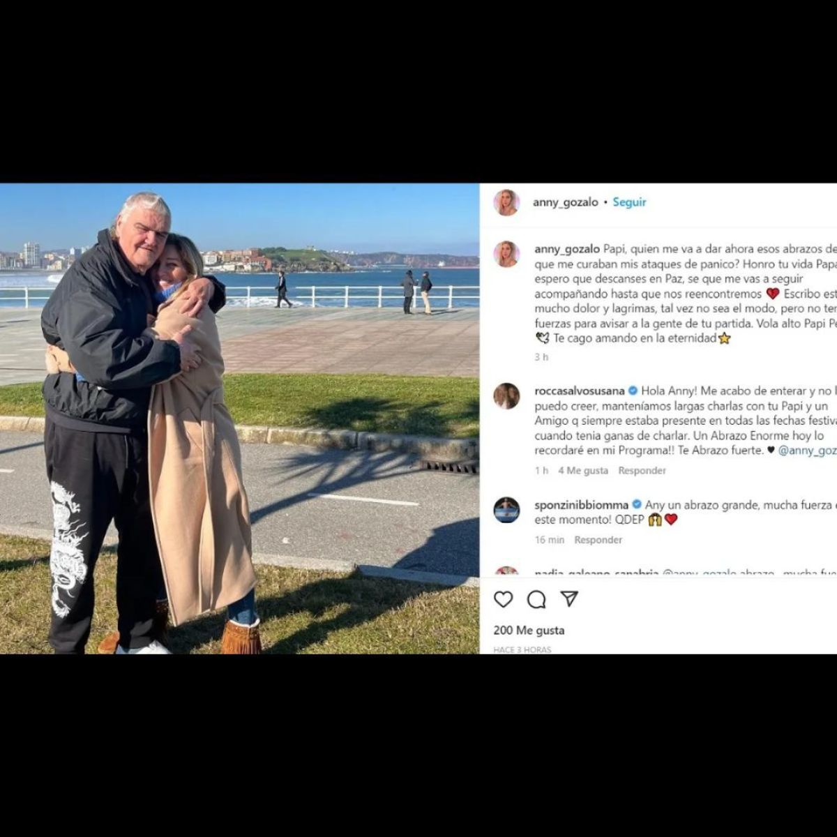 "Papi, ¿Quién me va a dar ahora esos abrazos de oso que me curaban mis ataques de pánico? Honro tu vida. Papá, espero que descanses en Paz", escribió la mujer.