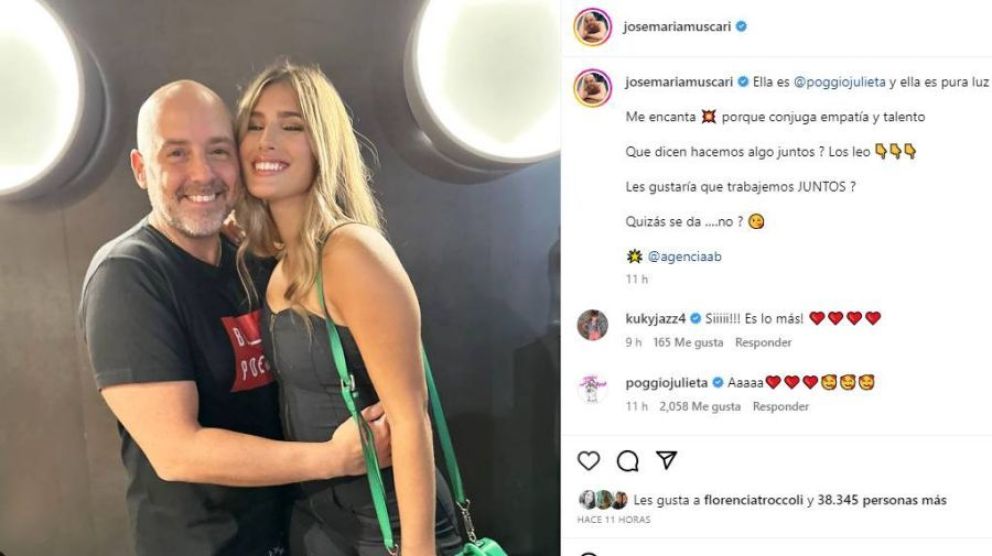 Quien apoyó la propuesta de José María fue Lola Poggio, hermana de Juli. “Por supuesto, un sueño”, escribió la joven. Horas después, Julieta reposteó la publicación del productor teatral en sus historias con el siguiente mensaje: “Ay, ay, ay. Vayan a comentar qué se imaginan”.