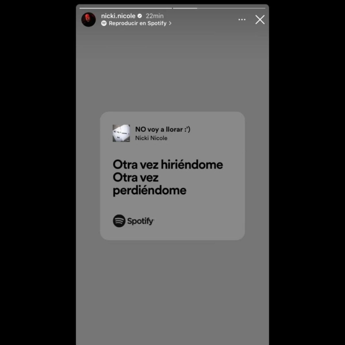 A través de sus historias, la artista, que cuenta con más de 14 millones de seguidores en Instagram, posteó la portada de Spotify con una sugerente frase: "Otra vez hiriéndome. Otra vez perdiéndome".