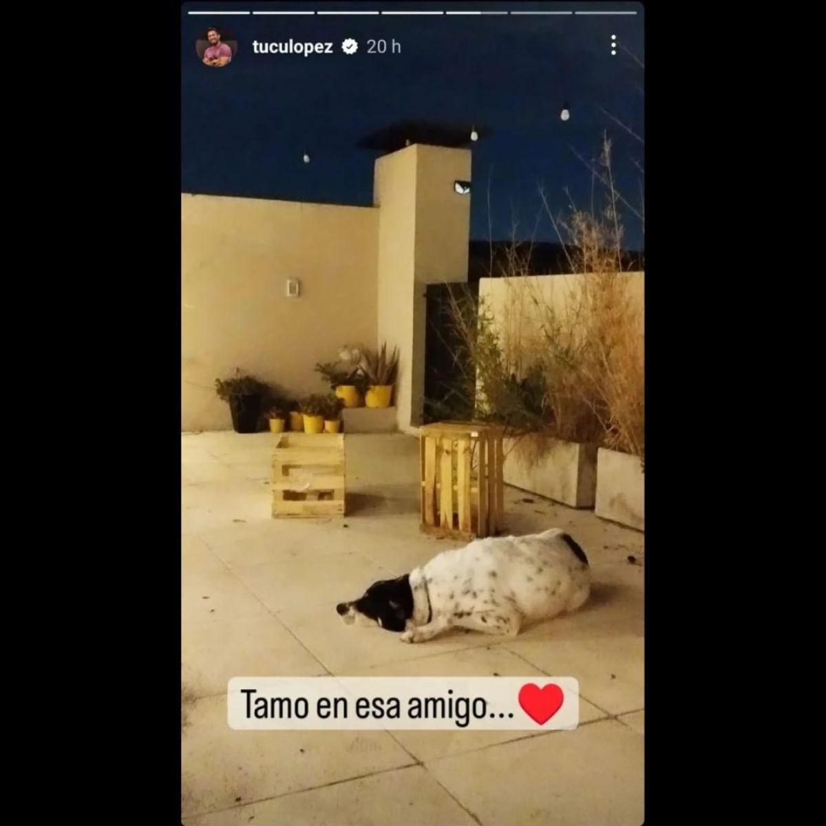 En la imagen se observa el perro del locutor en el piso, un tanto cabizbajo. “Estamos en esa, amigo...”, escribió en la publicación y sumó el emoji de un corazón.