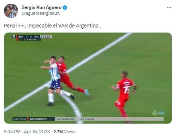 El clima caliente también se vivió en las redes sociales, tal es así que el Kun Agüero también se quejó. "Penal. Impecable el VAR de Argentina", escribió con ironía con una foto de la jugada.