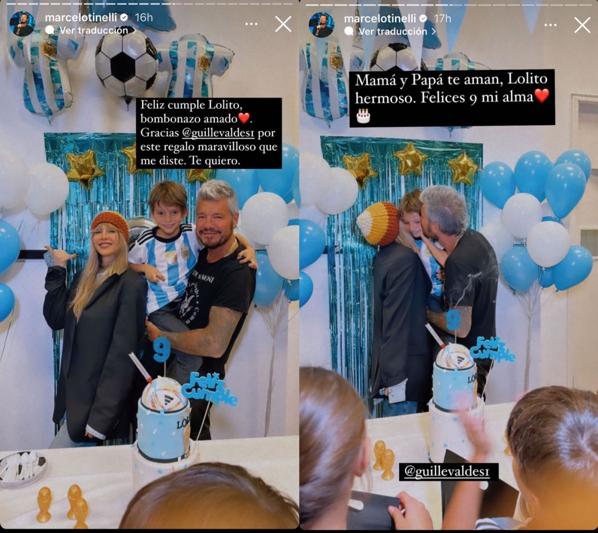 “Mamá y papá te aman, Lolito hermoso. Felices 9 alma mía”, agregó y Guille contestó en sus historias: “Marce, gran padre. Te quiero mucho”.