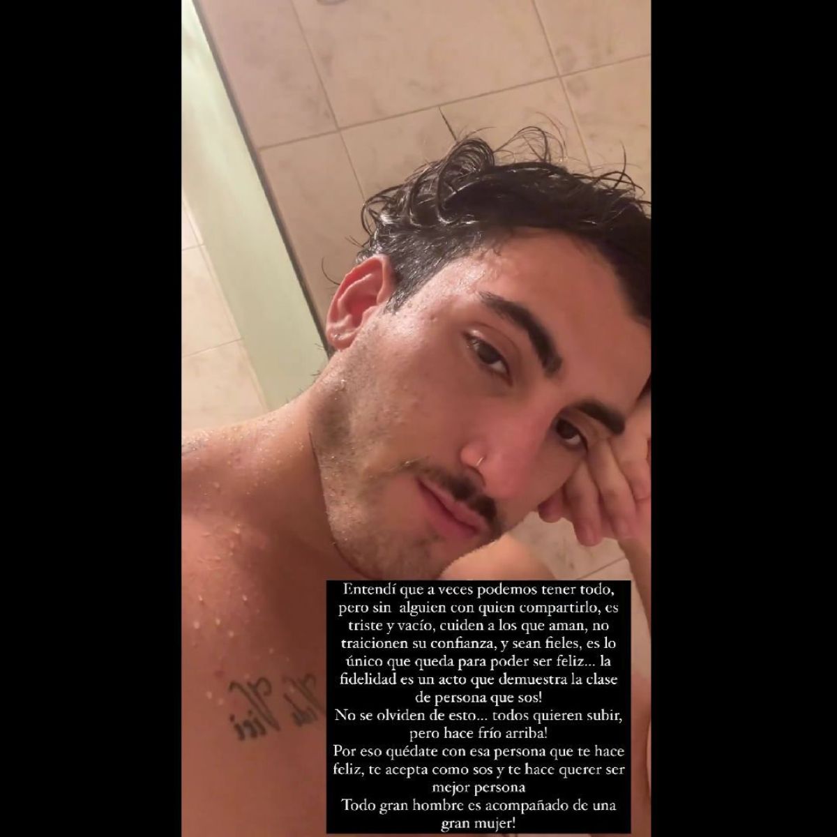 Ahora, en redes sociales, el ex hermanito compartió una historia que podría ser para su exnovia: "Entendí que a veces podemos tener todo pero sin alguien con quien compartirlo, es triste y vacío. Cuiden a los que aman, no traicionen su confianza y sean fieles. Es lo único que queda para poder ser feliz... ¡la fidelidad es un acto que demuestra la clase de persona que sos!".