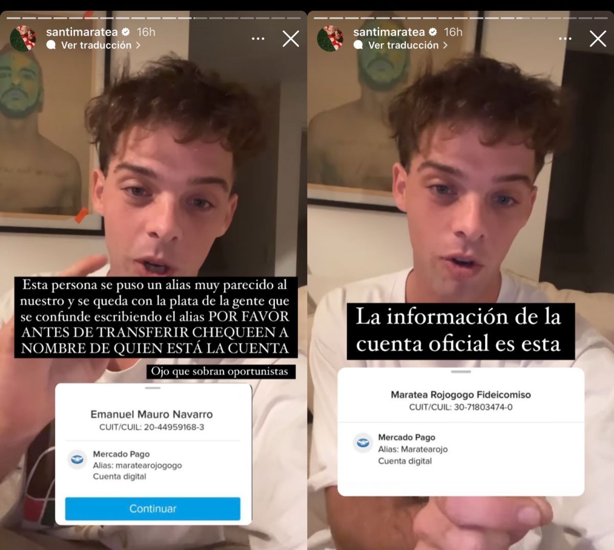 En medio de la colecta que organizó Santiago Maratea para ayudar al club Independiente, el influencer alertó a los hinchas para que no caigan en la estafa de un usuario que buscaba confundir con su alias.