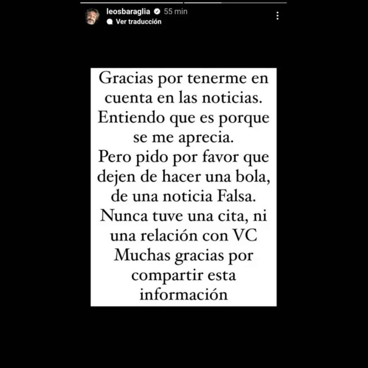 “Nunca tuve una cita, ni una relación con VC (Viviana Canosa). Muchas gracias por compartir esta información”, cerró el actor.
