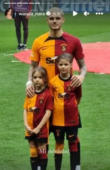 La empresaria volvió a generar incertidumbre entre sus seguidores al publicar una historia en la que aparecen Isabella y Francesca junto al delantero en un partido del Galatasaray. "Mi debilidad", se llega a leer en la imagen junto con la etiqueta de Icardi.