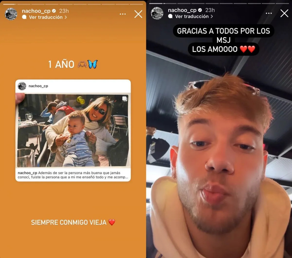 “Un año. Siempre conmigo, vieja”, expresó Nacho y recordó un posteo que había hecho junto a ella el día de su partida. “La persona que a mi me enseñó todo y me acompañó en cada cosa que quise hacer, siempre con una sonrisa y con esa mirada que te caracterizaba”, escribió aquel día.