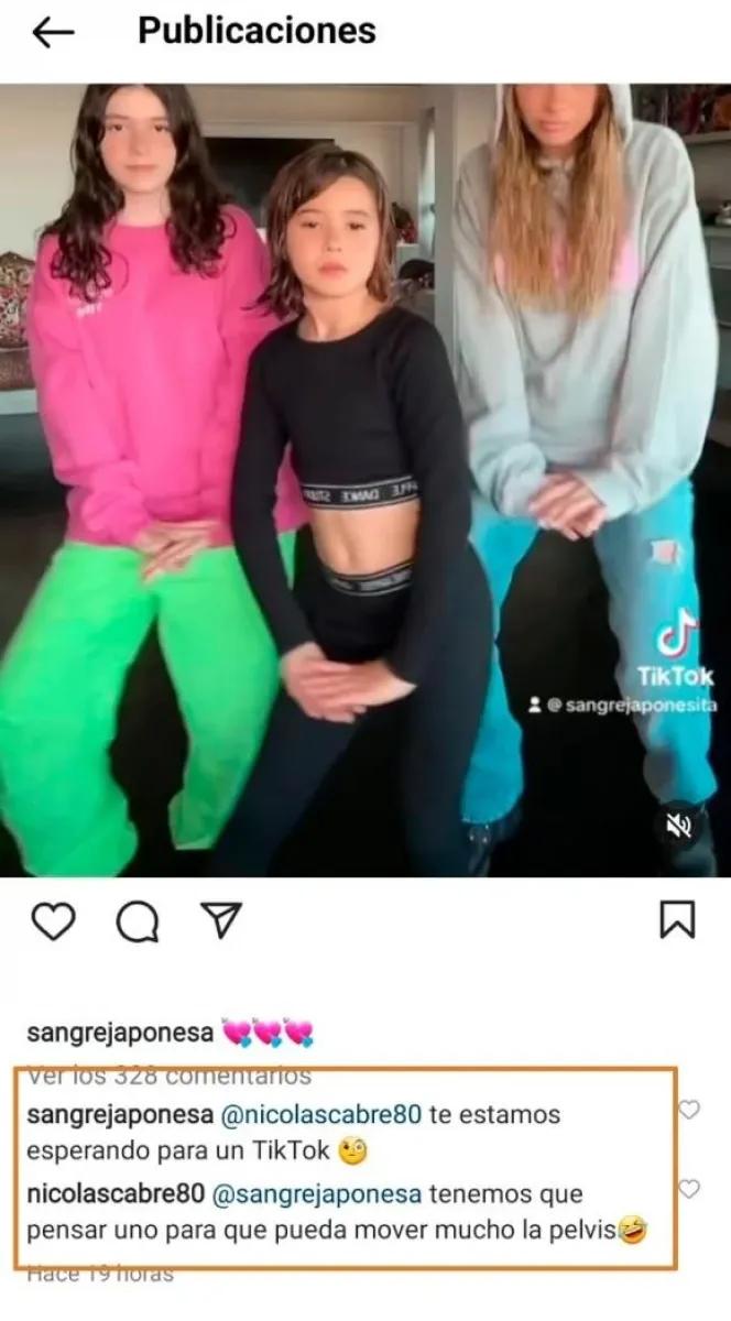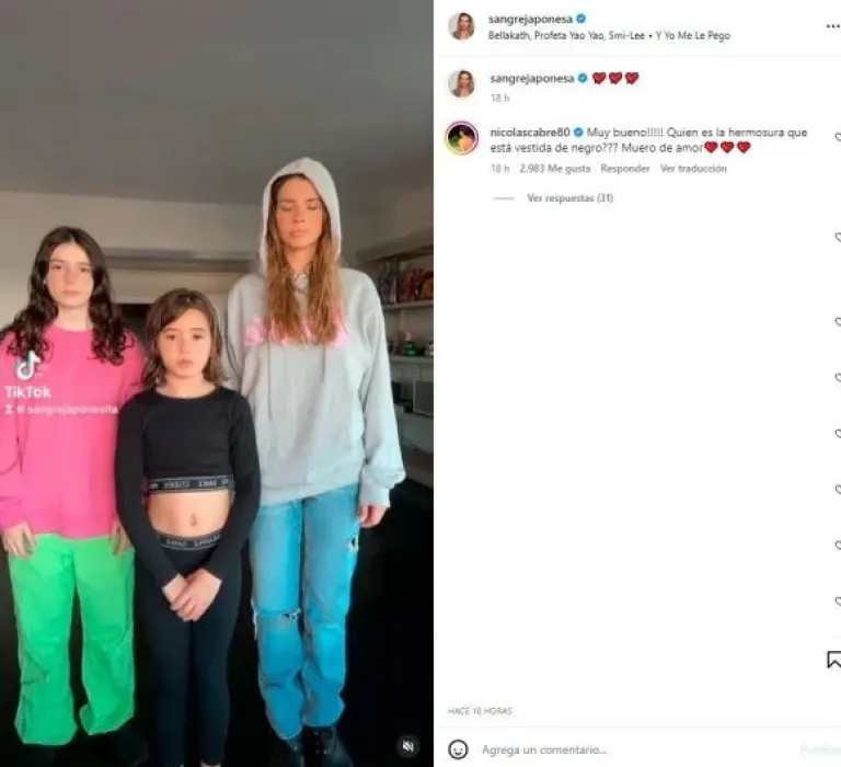“¡Muy bueno! ¿Quién es la hermosura que está vestida de negro? Muero de amor”, comentó en relación con el outfit de Rufi en el posteo donde se la podía ver bailando junto a su mamá. Al ver esa tierna reacción, la ex Casi Ángeles no lo dejó pasar y le hizo una tierna invitación a su ex: “Te estamos esperando para un TikTok”.